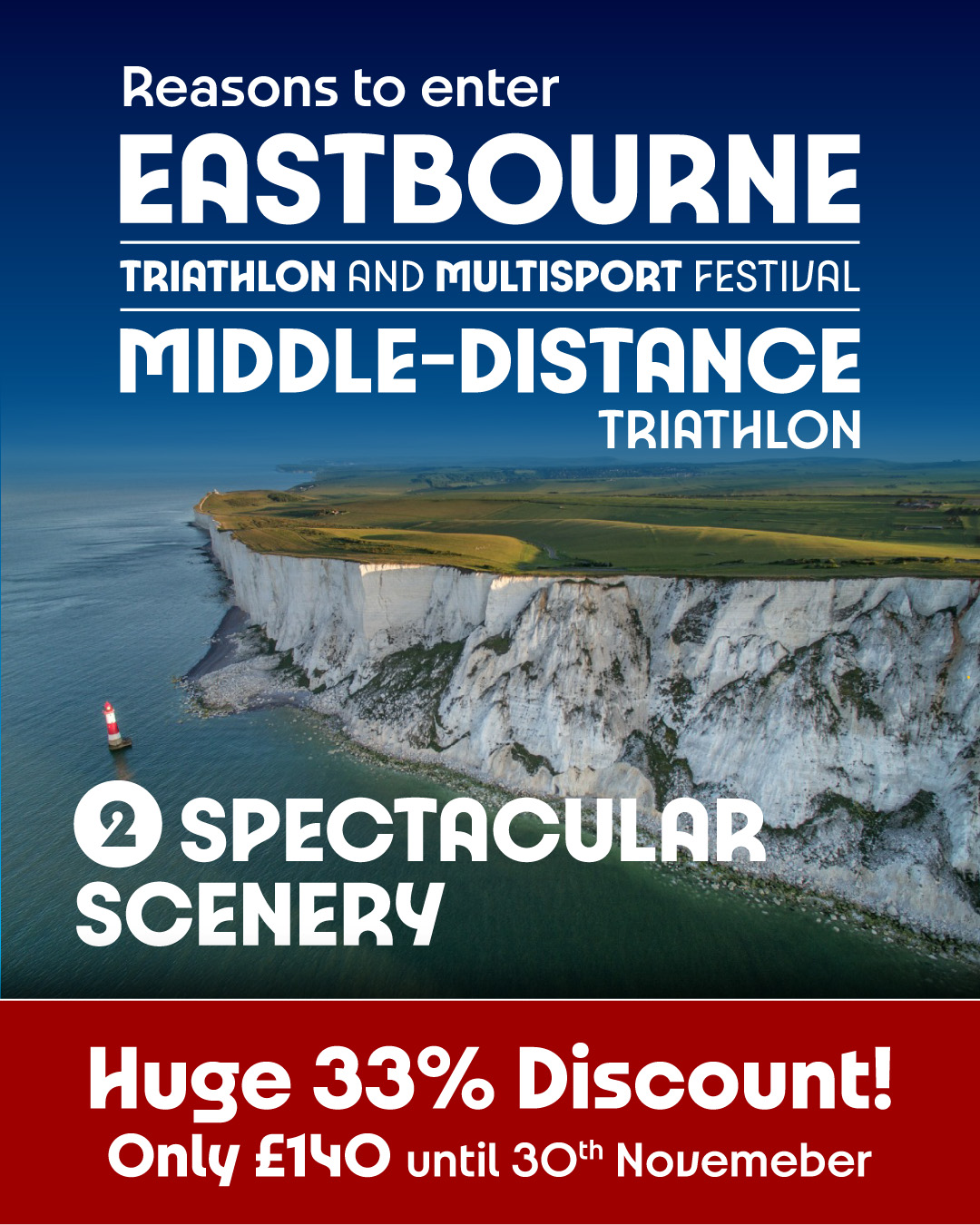 Eastbourne Triathlon & Multisport Festival is one of the most well established and highly respected triathlon events in the country. Our middle-distance race features a sea swim against the backdrop of Eastbourne’s historic pier, a multi-lap bike course on fully closed roads over the iconic Beachy Head Road, and a fast, flat run on the seafront promenade, culminating in an unforgettable blue carpet finish line experience. It’s a course that offers both challenge and reward, all set in a stunning location.